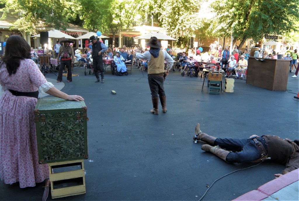 It was our Western Extravaganza with hayrides for the kids (of all ages), petting zoo, trail-rider chuck- wagon dining, line dancing, saloon shootout, fantastic weather, family visits, and favorite-tunes-for-old-farts band among the features that kept a few hundred people entertained for the afternoon.