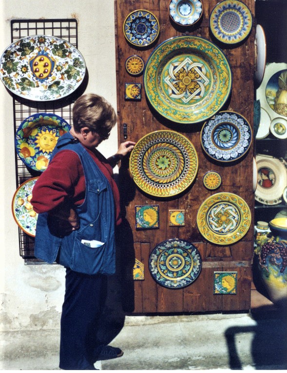 This artistic bent has filtered down to artisans. It’s evident everywhere but you can see it clearly just an hour away in Deruta, the ceramic capital of central Italy. Its shops offer baked and glazed clay in all shapes, sizes, designs and colors.